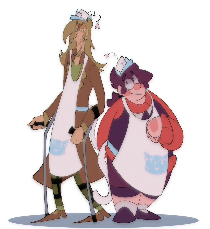 Owners of Wingtail’s infamous Kitten Kaboodle Cat Cafe!While Harol is the establishment’s shining sun with a pleasure of making people and cats alike happy as can be ; Douglas is more focused on the work and ethics of the place rather than the galavanting kittens .Even with drastically different personalities ; they work amazingly well together. And despite Douglas’s grumpy , cold demeanor , Harol fancies him quite a bit .